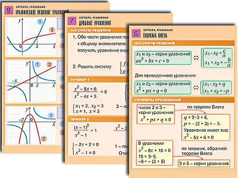 Комплект учебно-наглядных пособий "Алгебра. Функции, их свойства и графики" формата А1 с полноцветной двухсторонней печатью и матовой двухсторонней ламинацией в количестве 8 таблиц.