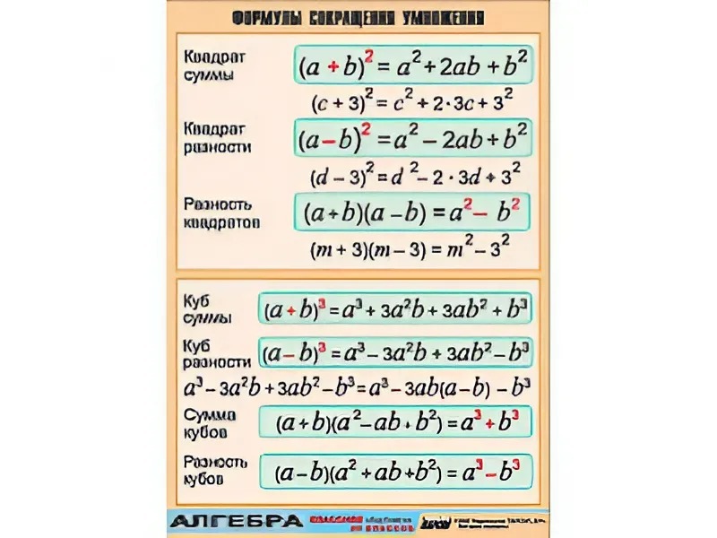 Таблица демонстрационная "Формулы сокращения умножения" (винил 100*140)