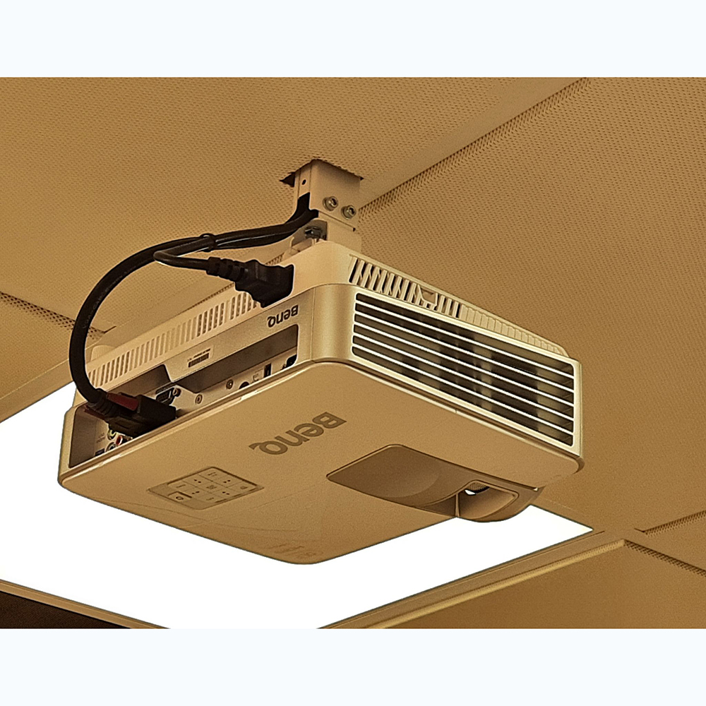 Короткофокусный проектор может быть установлен перед интерактивной доской на расстоянии от 0.5 до 1.5 метра. С помощью специального настенного или потолочного крепления проектор может быть закреплен над доской. Установленный таким образом проектор не мешает передвижениям пользователя перед доской и гарантированно застрахован от случайных повреждений.