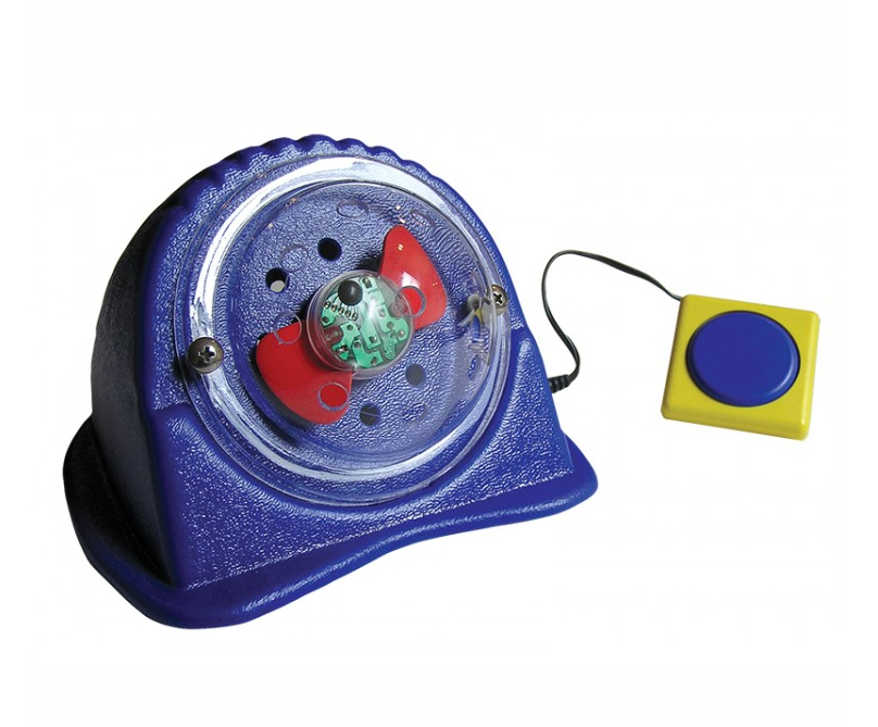 Соедините внешний переключатель с игрушкой. Нажмите на кнопку переключателя, и под куполом игрушки начнут появляться и вращаться разноцветные огни. Интенсивность появления и вращения огней зависит от силы нажатия на переключатель.