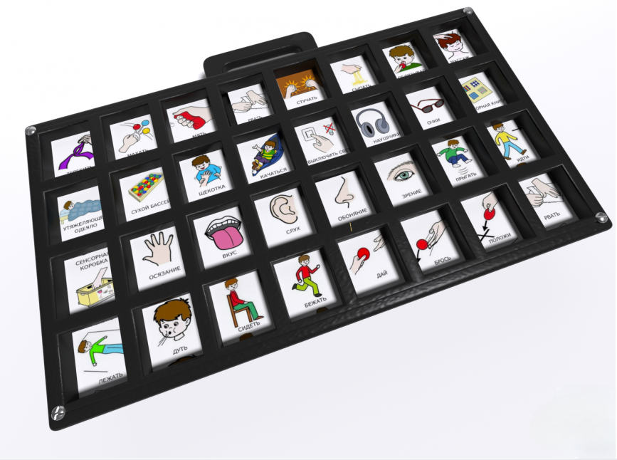 Смарт 32 игровой коммуникатор создан для развития детей, имеющих проблемы со слуховым, зрительным, тактильным восприятием и коммуникацией. Прямоугольный корпус имеет компактный размер и ручку для удобной транспортировки, оснащен 32 кнопками с кармашками для демонстрационных изображений. Каждая из кнопок предназначена для записи и воспроизведения голосовых сообщений, имеет 6 уровней записи, длина каждого сообщения – 10 секунд. Устройство изготовлено из высококачественного ударопрочного пластика, имеет обтекаемые плавные формы без острых краёв и углов.