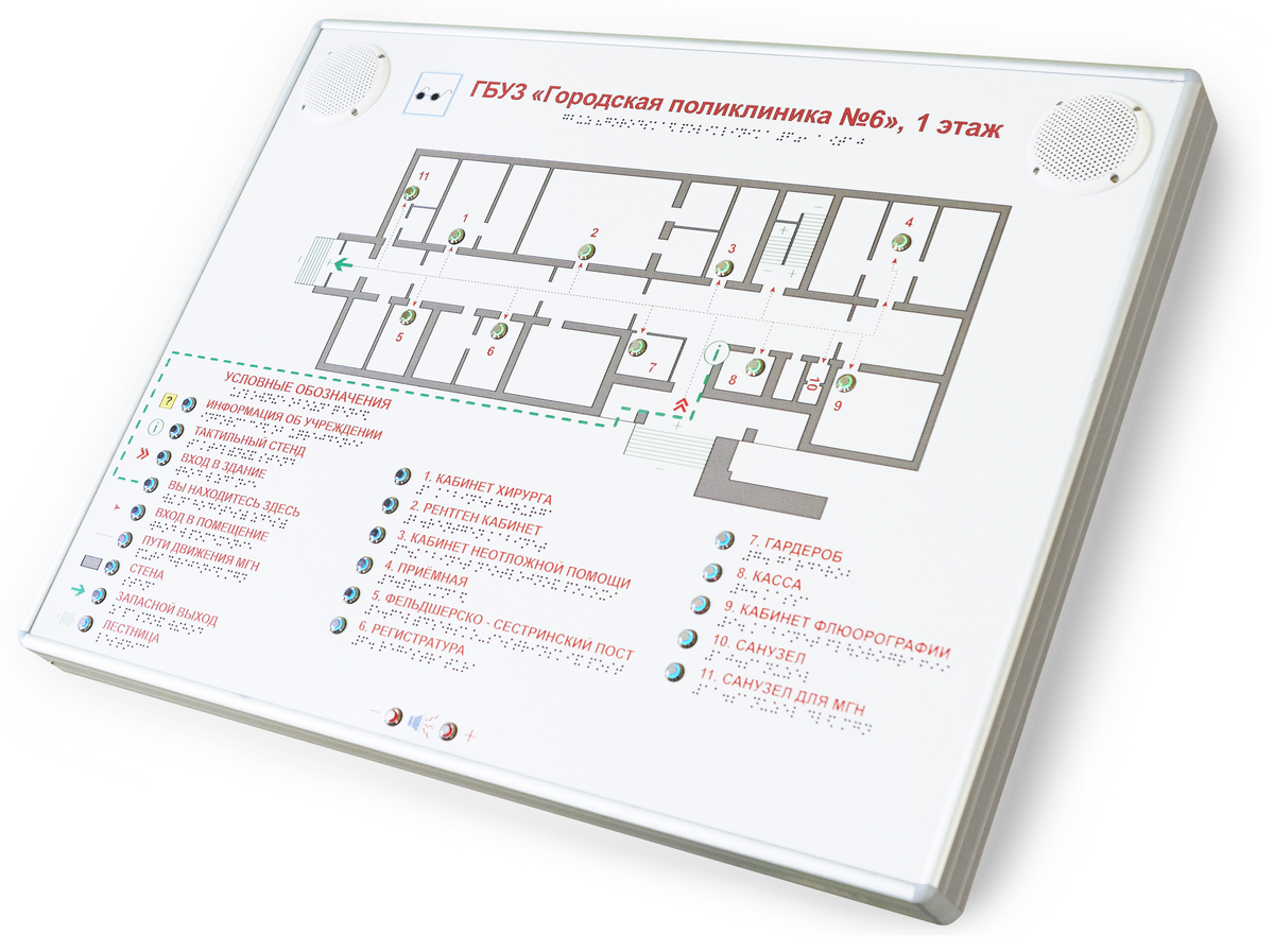 Тактильно-звуковая мнемосхема 610 х 470 в комплекте с наклонной стойкой. Максимальный комплект.
