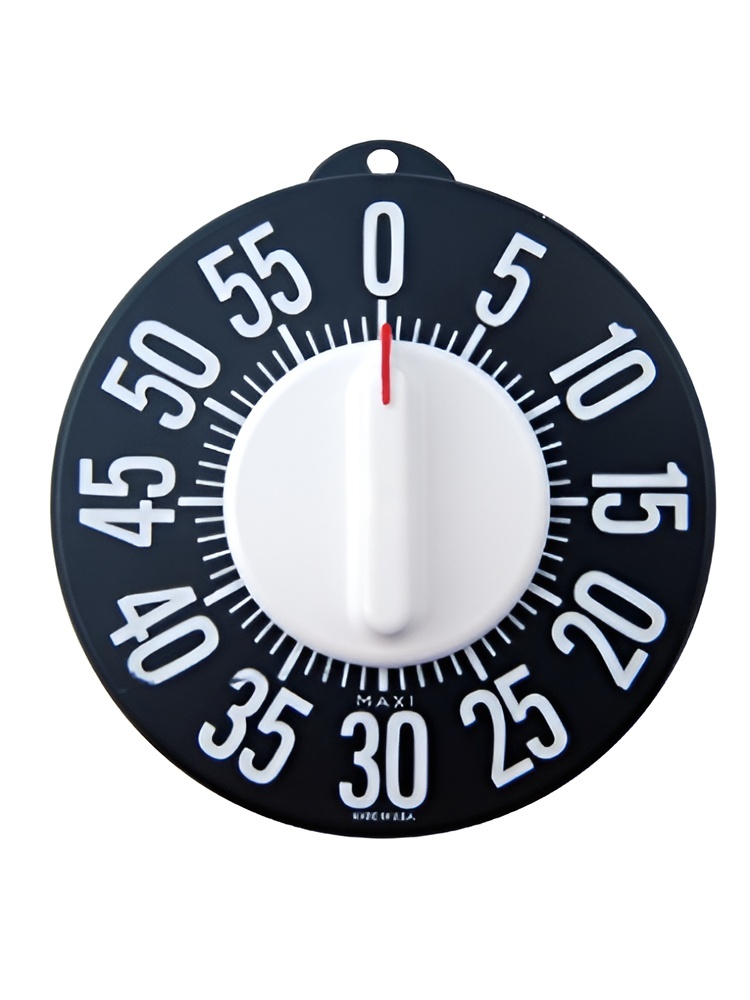 Таймер представляет собой тактильный циферблат черного цвета, на который нанесены крупные белые цифры.