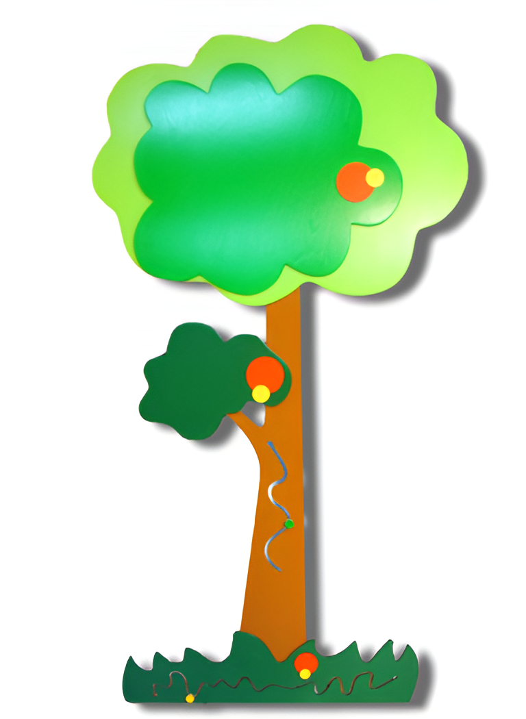 Бизиборд – дидактическое приспособление с игровым уклоном для детей от 1 года. Может быть как объёмным (куб, домик), так и более компактным - в виде плоской настенной панели, которая замечательно экономит игровое пространство, не уменьшая при этом его ценности. Бизиборд в виде вишневого дерева - одна из таких моделей, которая крепится к стене. Основа выполнена в форме вишнёвого дерева, украшена фигурками цветочков и листиков.