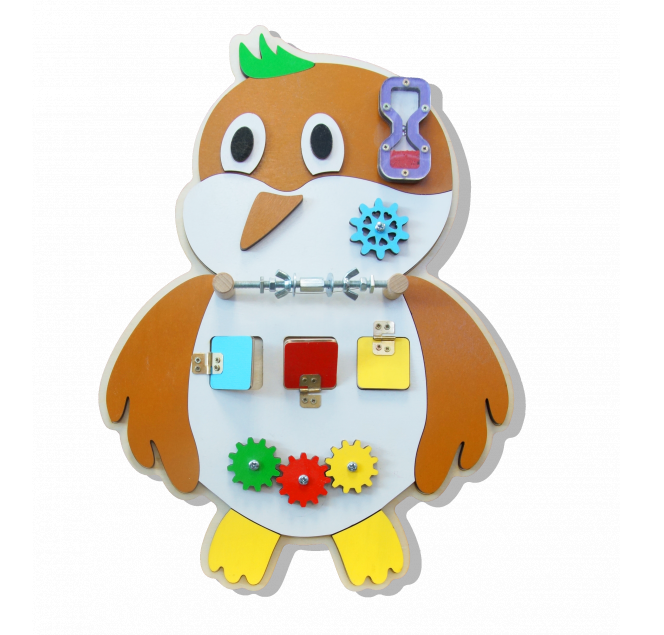 Бизиборд, который будет интересен и увлекателен для детей разных возрастов. Форма воробья познакомит ребенка с миром птиц. Доска безопасна: нет острых углов, гладкая поверхность не оставляет заусенцы на коже малыша. Бизиборд в виде воробья можно использовать для дома, для детских центров, детских садов, для ресторанов и клиник.