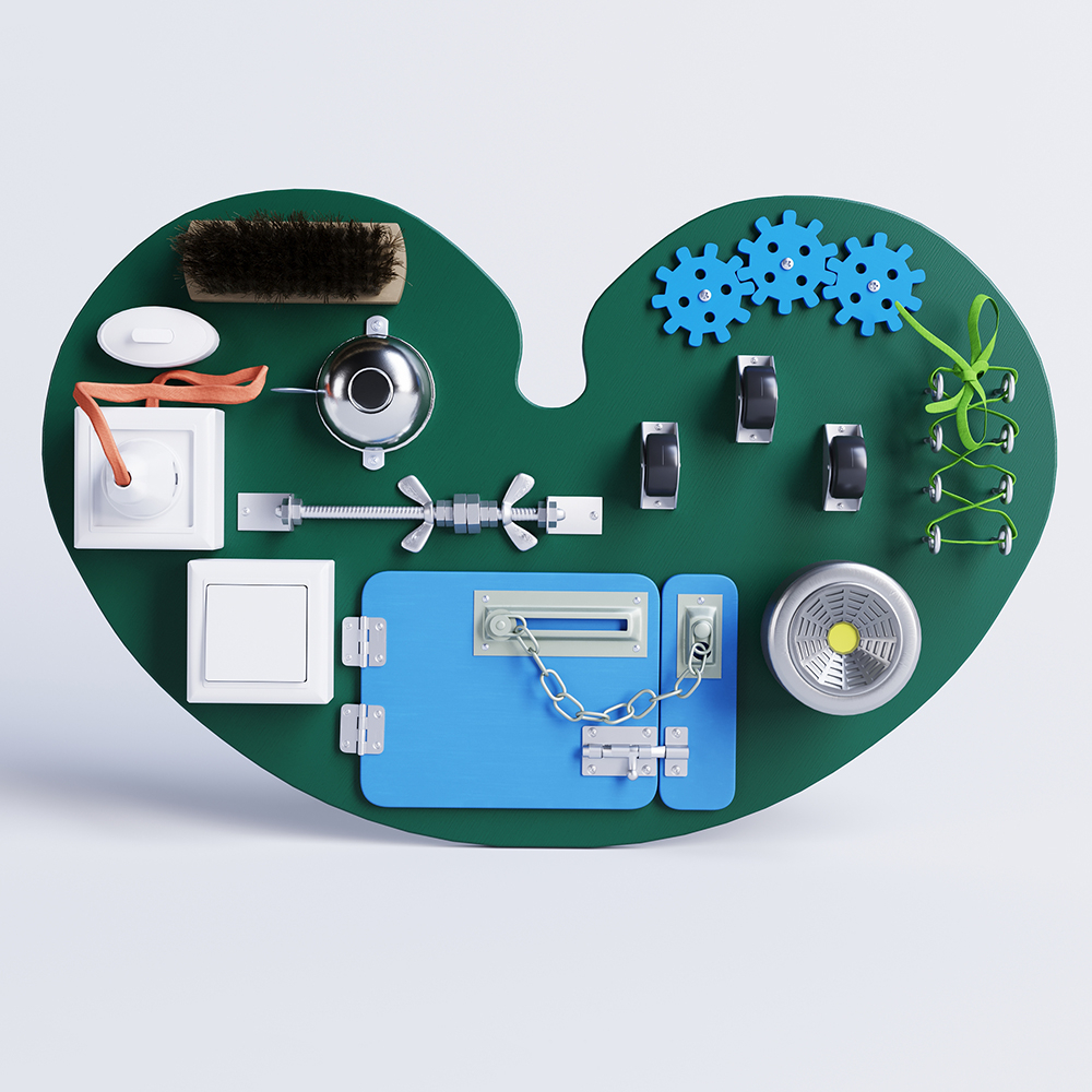 • Расскажите ребенку, как работают элементы бизиборда: открывающиеся дверцы с замками, выключатель, розетка с вилкой. Приведите примеры, где можно встретить подобные элементы в жизни. Таким образом, малыш становится самостоятельным, а удовлетворяет детское любопытство к бытовым вещам.