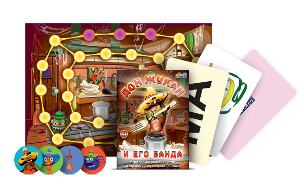 «Дон Жукан и его банда» — настольная игра-догонялка, в которой ребенок «убегает» от ведущего по карте и на каждом ходу повторяет слоги. Игра поможет активизировать речь детей и отработать с ними звукопроизношение.