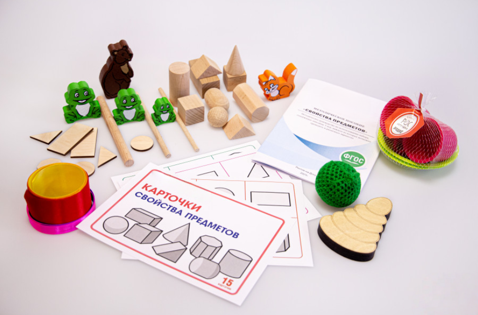 Игровой набор «Свойства предметов» предназначен для развития осязательного восприятия, умений дифференцировать величину (ширина, глубина, объем, высота).