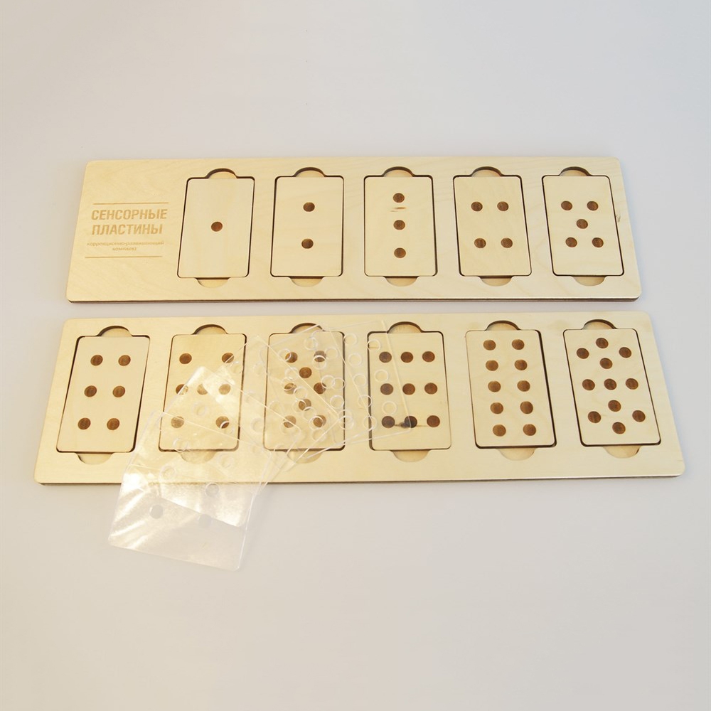 Профессиональный комплект для работы с детьми «Сенсорные пластины» направлен на развитие тактильного восприятия и различения с усложнением в виде когнитивной нагрузки (счет, выстраивание числовых последовательностей). Рекомендован для индивидуальной работы с детьми от 5 лет. Комплект предполагает проведение упражнений, как при полном сенсорном контроле, так и при условно-изолированном тактильном канале. В этом случае, когнитивная нагрузка создает условия для так называемых осмысленных тактильных упражнений.