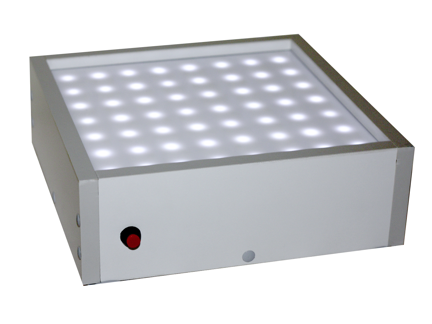 Размер 30х30х10см. При рисовании пальцами по панели повторяется рисунок движения, который гаснет не сразу, а с запозданием, образуя шлейф свечения.