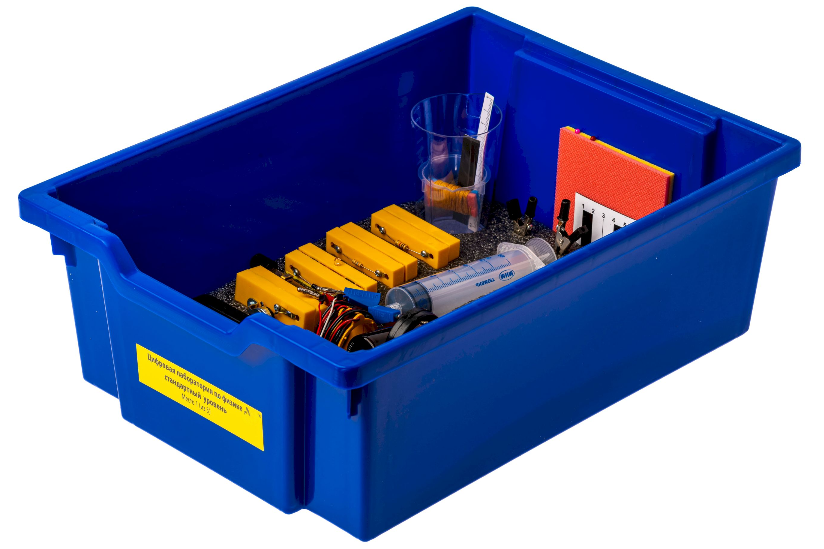 Все оборудование цифровой лаборатории (кроме скамьи лабораторной) укомплектовано в пластиковые системы хранения, которые закрываются прозрачной пластиковой крышкой на защелках для обеспечения наблюдения за содержимым. Комплект оборудования и датчики в системах хранения располагаются на ложементах в индивидуальных ячейках.