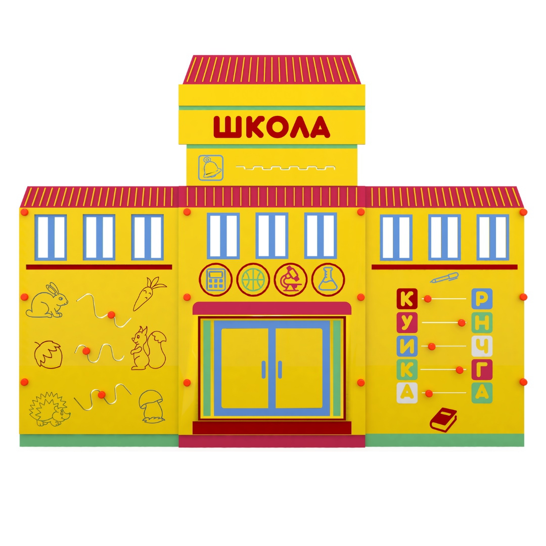 Мобильный макет школы дополняет комплект автогородка, позволяет создавать различные дорожные ситуации! Используйте стенд как точку назначения или старта движения в ролевых играх по изучению правил дорожного движения. На макете расположены бизи-элементы, которые ребенок может крутить, перемещать, тем самым развивая моторику рук. Макет предназначен как для помещения, так и для улицы. Он выполнен из влагостойкой фанеры и ему не страшны любые осадки!