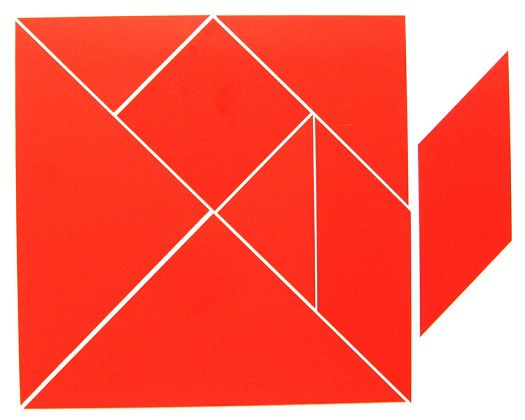 Нам остается добавить, что в комплект магнитного Танграма входит дополнительный параллелограмм, который необходим для складывания некоторых фигур. Это сделано потому, что только параллелограмм не имеет зеркальной симметрии.