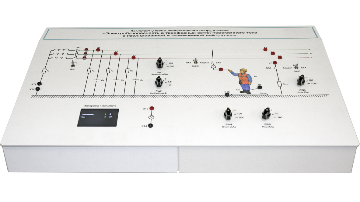 Комплект учебно-лабораторного оборудования «Электробезопасность в трехфазных сетях переменного тока с изолированной и заземленной нейтралью»