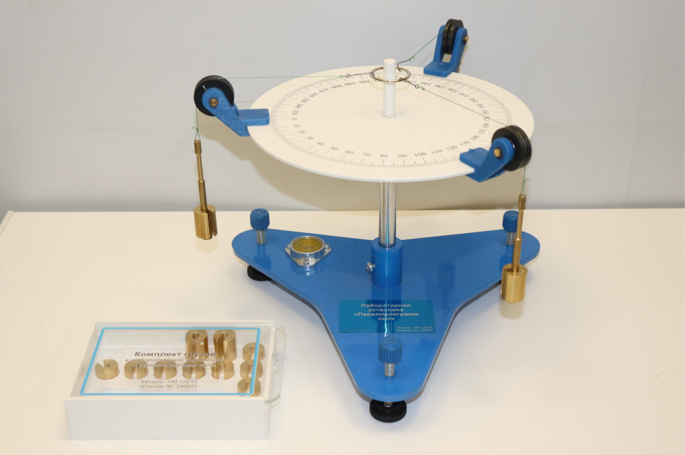 Лабораторный установка «Параллелограмм сил» предназначен для экспериментального исследования векторного сложения сил.